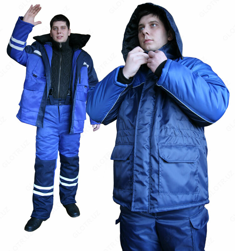 Комплект мужской рабочий имеет светоотражающие полосы.Закрытый клапан на молнии.